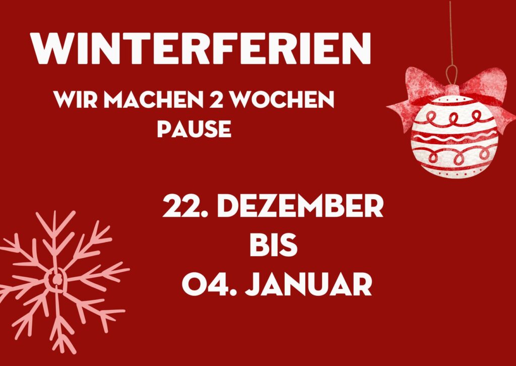 Wir machen von 22. Dezember 2025 bis 04. Januar 2026,